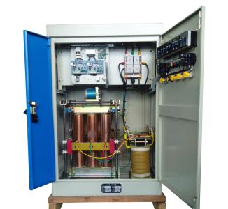 主要特点: SVC(TND、TNS)系列单、三相高精度全自动交流稳压器,其结构由接触式自耦调节器、伺服式电动机、自动控制电路等组成,当电网电压不稳定或负载变化时,自动采样控制电路发出信号驱动伺服电机,调整自耦调节器碳刷的位置,使输出电压调整到额定值并达到稳定状态。三相高精度全自动交流稳压器是三个SVC系列单相产品性能的组合,其输入相制分三相四线制,输出电压为线电压380V在额定电容量范围内,可同时供电源电压为三相380V用电设备使用,并设有过压保护功能。 1、优点: ①输入电压范围可以做得较宽(因为炭刷移动行程长)。 ②输出电压波形与输入电压波形相同,相位也一致。 ③整机效率高(自耦调压器损耗小,一般效率为95%以上)。 ④负载性质适应性好。 ⑤容易制作,成本低,价廉。 ⑥可以做成大功率补偿型电源。 2、缺点: ①工作寿命较短(因有炭刷磨损) ②响应时间长(因利用机械传动,动作慢) ③稳压范围宽但是低压时稳压器容量要减半才能用 ④目前市场上为了减少成本省缺少实际意义的保护功能 3、适用场合:对响应时间没有要求的部门,例如工厂生产车间、给蓄电池充电器供电、一般电子仪器、家用电器等。
