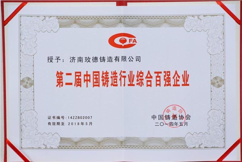 第二届中国铸造行业综合百强企业(至2018年)