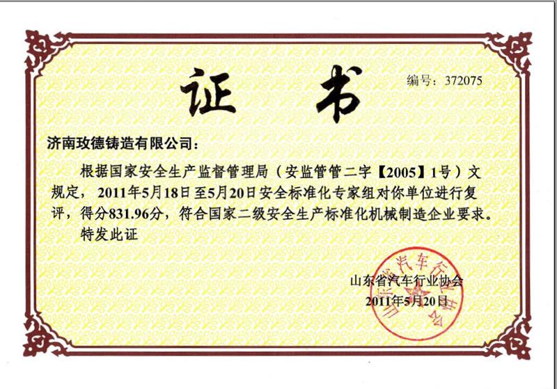 国家二级安全生产标准化机械制造企业