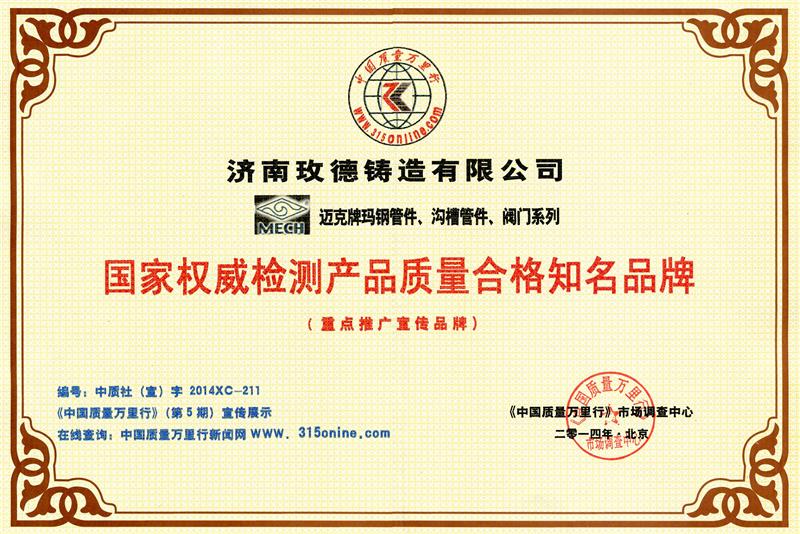 国家权威检测产品质量合格知名品牌